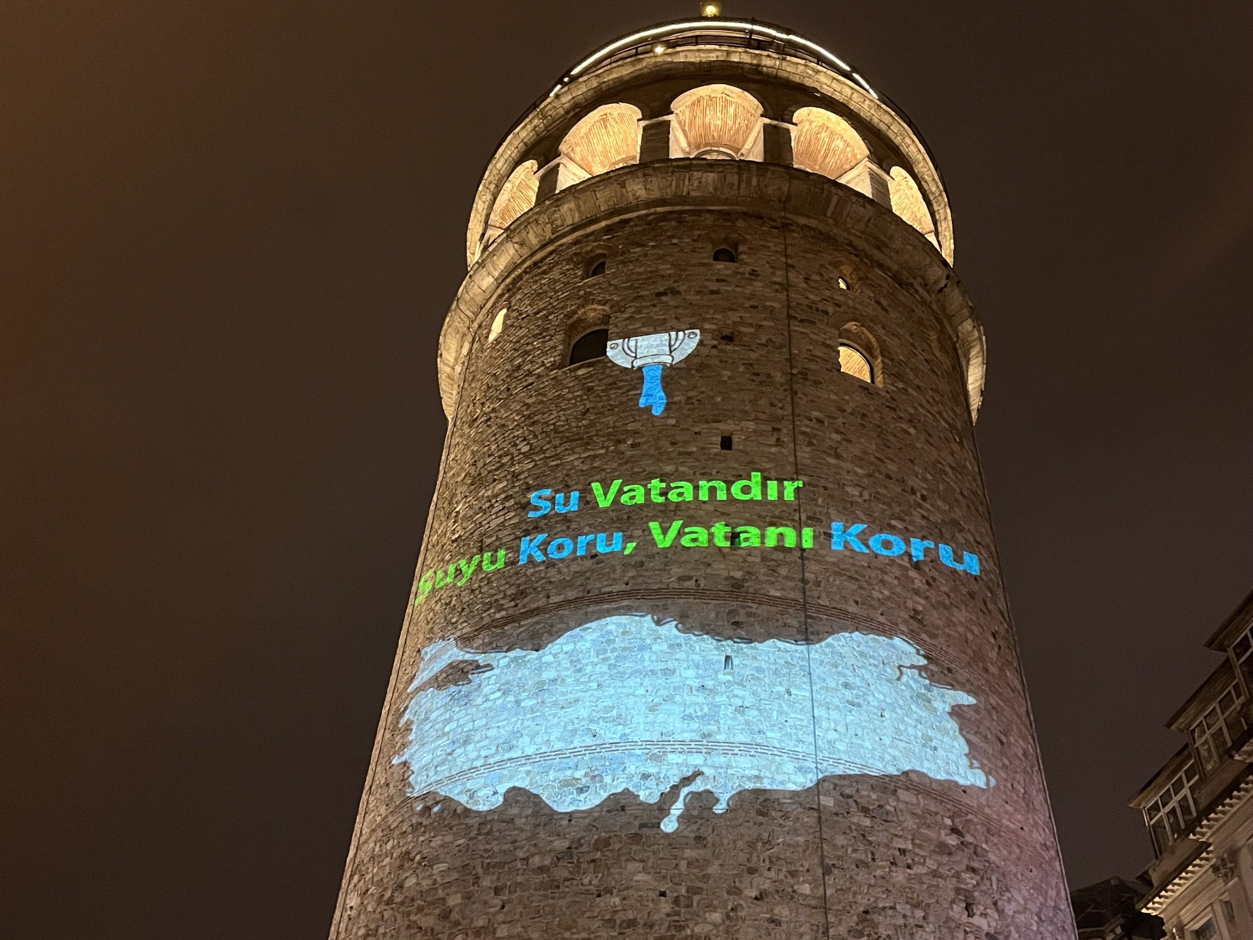 İstanbul İl Tarım ve Orman Müdürlüğü tarafından 22 Mart Dünya Su Günü’nde, ‘Ulusal Su Verimliliği Seferberliği’ kapsamında Galata Kulesi’ne video yansıtıldı. “Su Vatandır! Suyu Koru, Vatanı Koru” sloganı ile farkındalık oluşturması amaçlanan etkinlikte, Galata Kulesi’ne yansıtılan video vatandaşların ve turistlerin ilgisini çekti.